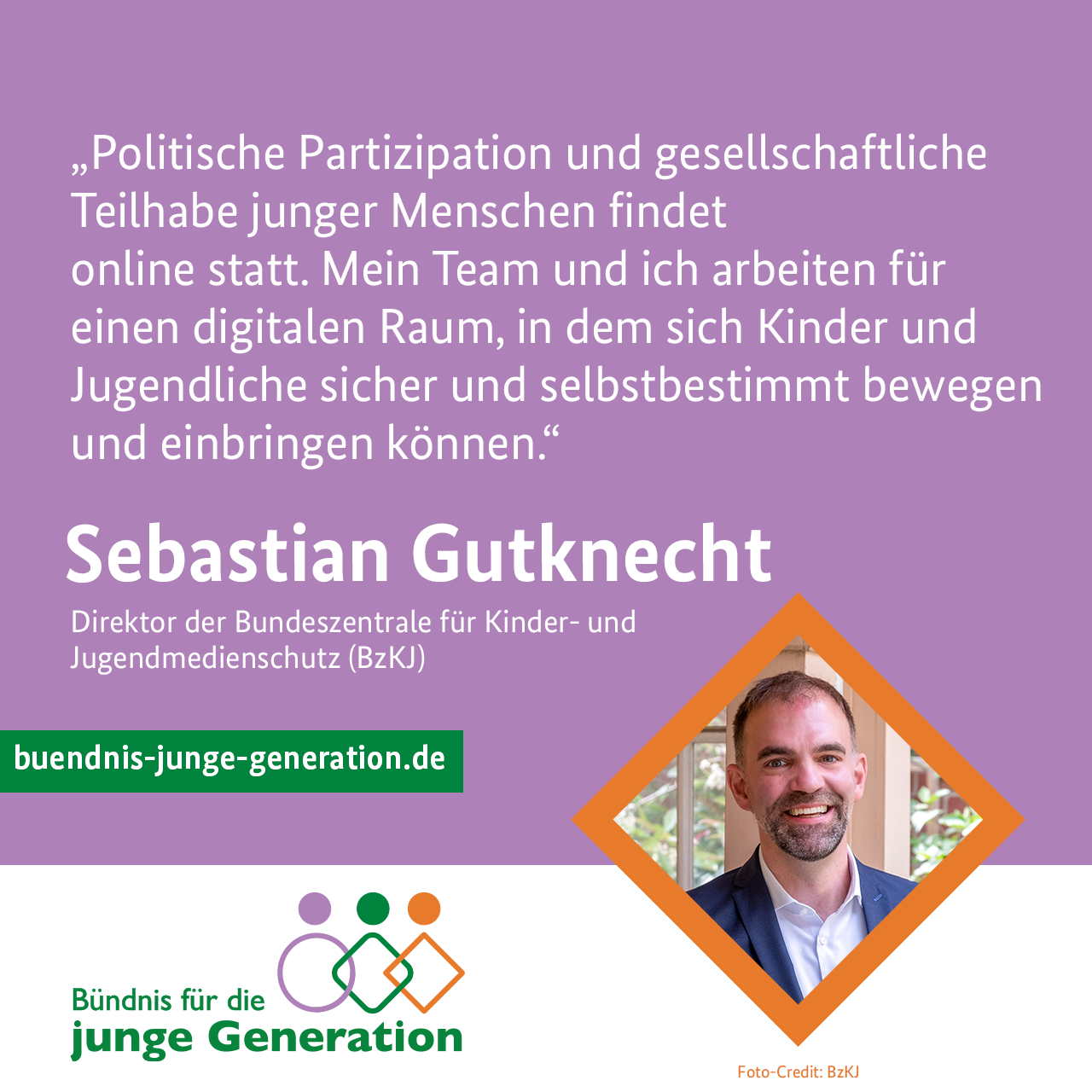 Alle Bündnispartnerinnen und -partner haben sich dem Bündnis mit einer konkreten Ankündigung angeschlossen, was sie in ihrem Arbeitsbereich für Kinder und Jugendliche bewirken möchten. Für Sebastian Gutknecht, Direktor der Bundeszentrale für Kinder- und Jugendmedienschutz (BzKJ), steht dabei gerade angesichts aktueller Krisen der Aspekt der Teilhabe im Vordergrund: